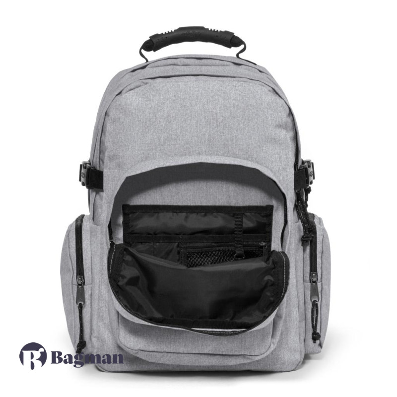 Для основных ежедневных вещей и предметов одежды предназначено два главных отделения с молниями на двух замках. Есть безопасный отсек под ноутбук, находящийся в заднем отделе возле спинки. Для мелких предметов созданы внешние карманы, которые находятся по бокам и спереди. В рюкзаке присутствует органайзер, в котором имеется держатель ключей и сетчатый карман для обзора содержимого без его расстегивания.