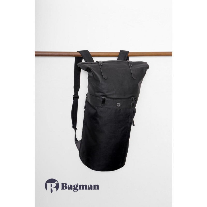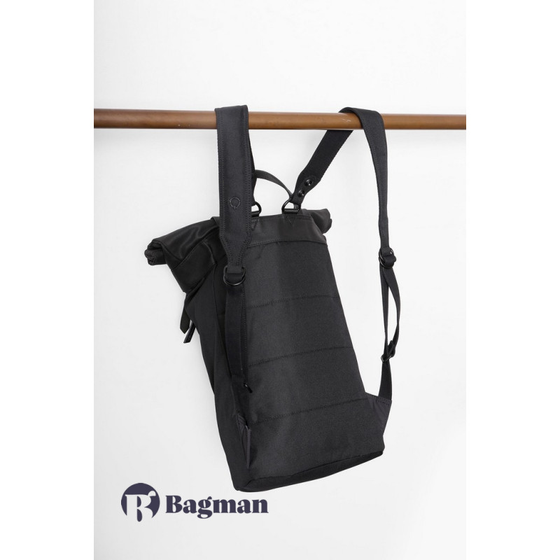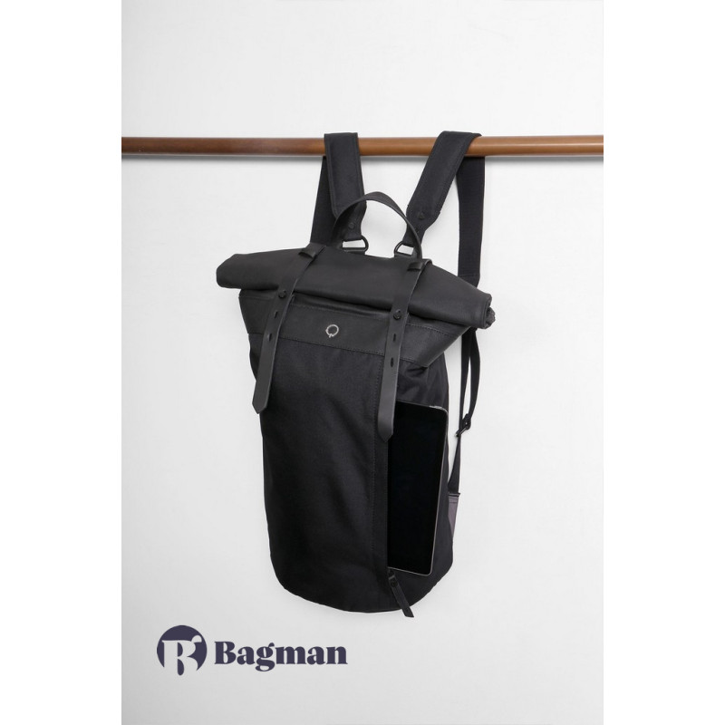 Уникальный силуэт и форма позволяющие менять объём рюкзака с 22 до 36 литров. Даже в развернутом виде, ролл защищен от попадания влаги, благодаря системе креплений и кожаным ремням. Рюкзак оснащен карманом для ноутбука до 15 дюймов, с боковым доступом на ZIP-молнии.
