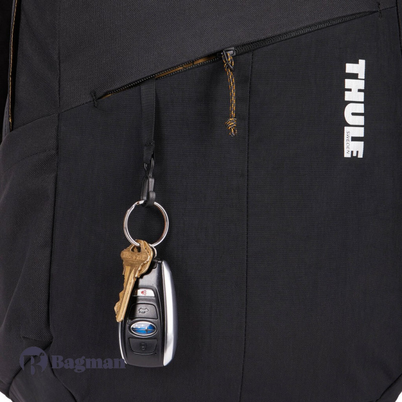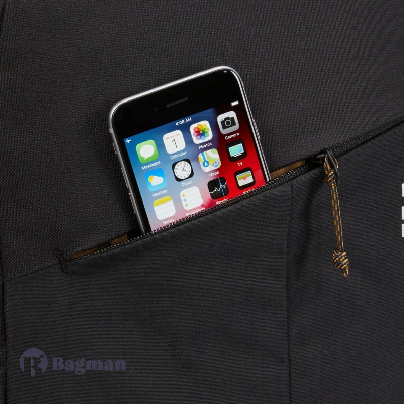 Внутри основного отделения находится уплотненный отсек, в котором помещается 15-дюймовый ноутбук. Для предметов небольших размеров предусмотрен карман на молнии. Передний карман оснащен креплением для ключей. Боковые карманы используются для бутылок с напитками.