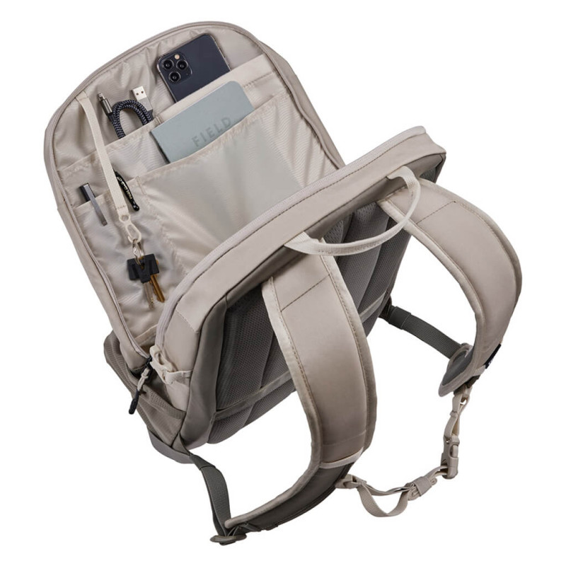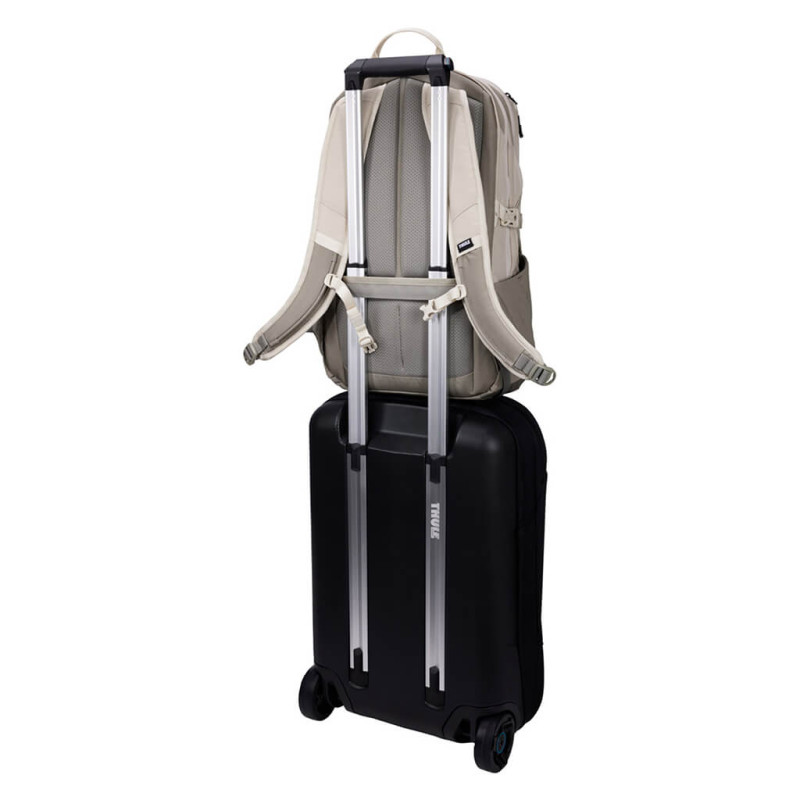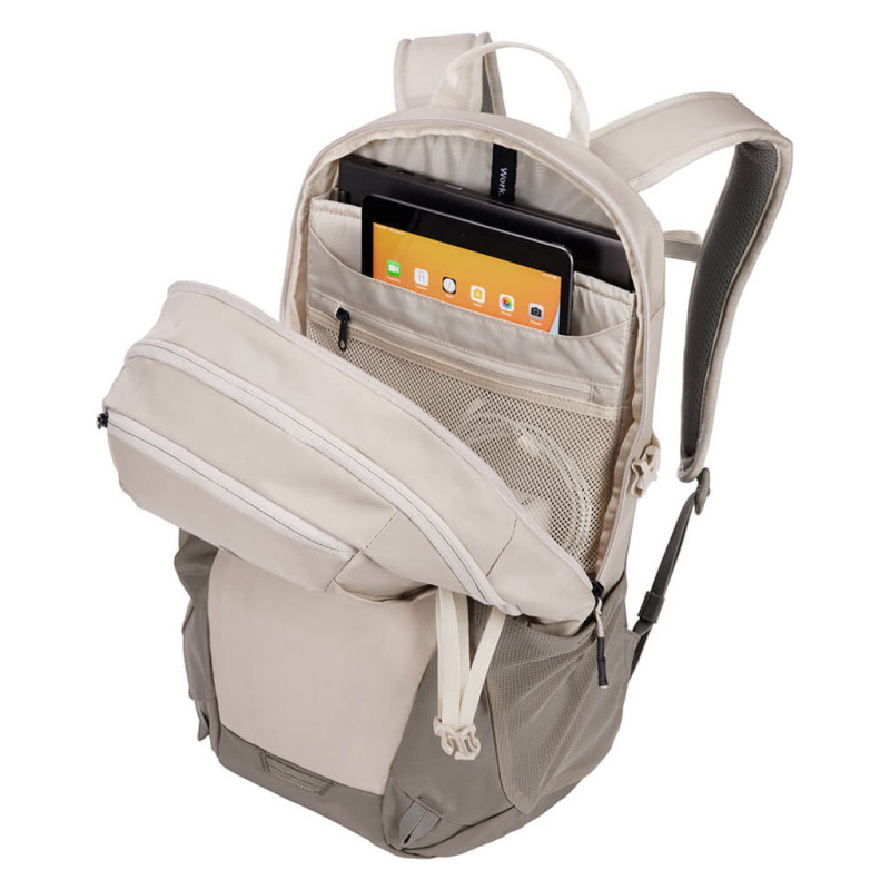 Thule EnRoute Backpack 23L Pelican/Vetiver — это городской рюкзак, который можно брать в путешествия. Он имеет анатомические лямки с нагрудным ремнем и плотную вентилируемую спинку для комфортного передвижения. Горизонтальный ремень на спинке предназначен для установки рюкзака на выдвижной ручке чемодана.