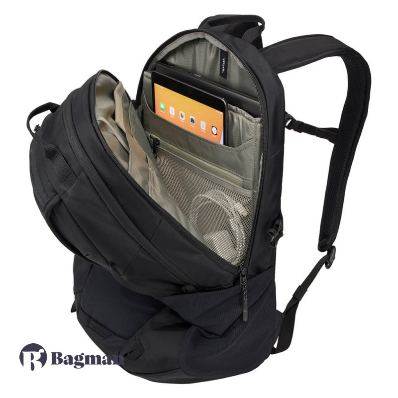 Thule EnRoute Backpack 26L Black — это рюкзак для города и путешествий от шведской компании. Модель выполнена из нейлона одобренного bluesign. Рюкзак оснащен боковыми стягивающими ремнями, нагрудным ремнем и ремнем на спинке для фиксации на выдвижной чемоданной ручке. Снаружи есть петли для крепления снаряжения.