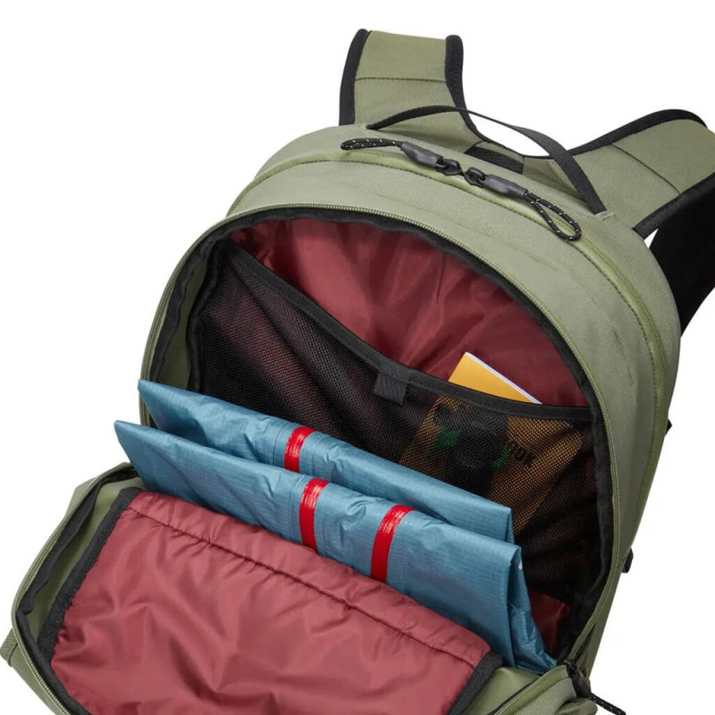 В рюкзаке есть место для планшета и 16-дюймового ноутбука вместе со всеми его аксессуарами. Передний карман расширяется, для того чтобы в него поместился велосипедный шлем. Там есть место и для велозамка. Спереди к рюкзаку крепится фонарь. Боковой карман на молнии предназначен для телефона. Второй боковой карман — для бутылки воды.