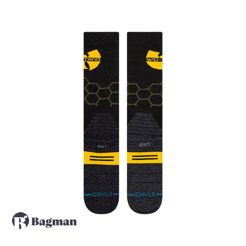 Stance WU TANG HIVE SNOW BLACK L — это высокие носки, которые доходят до колен. Они имеют среднюю толщину и уплотненную подошву. Задняя часть сделана таким образом, чтобы защищать лодыжки от натирания обувью.