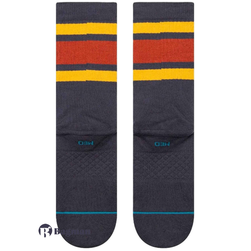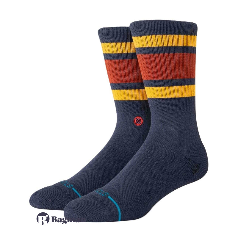 Представляємо шкарпетки Stance Boyd St у яскравому золотому кольорі, розроблені для тих, хто полюбляє серфінг та активний відпочинок. Ці круглі шкарпетки з насичено-синьою основою мають сміливі, яскраві смужки, які додають індивідуальності вашому вбранню. Виготовлені з високоякісної чесаної бавовни, вони забезпечують виняткову м'якість та довговічність, ідеально підходять для частого носіння. Дрібно ребриста манжета надійно тримає шкарпетки на місці, а тонка амортизація в області пальців та п'ят забезпечує додаткову підтримку під час ваших пригод. Вишуканий логотип бренду розташований трохи нижче яскравого візерунка, що підкреслює загальну привабливість. Ідеально підходять для поєднання з шортами або повсякденними штанами, ці шкарпетки пропонують стиль та комфорт, що робить їх обов'язковими для будь-якого вимогливого серфера чи любителя активного відпочинку.