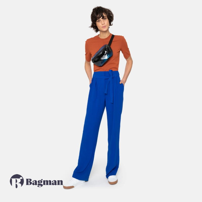 Классическая поясная сумка с одним отделением. Выполнена из полиэстера с лакированным покрытием, по которому капли влаги стекают и не попадают внутрь. Черно-синяя расцветка переливается разными оттенками. Идеально подойдет для всех ваших приключений. Задний кармашек на молнии защитит все ваши ценные вещи.