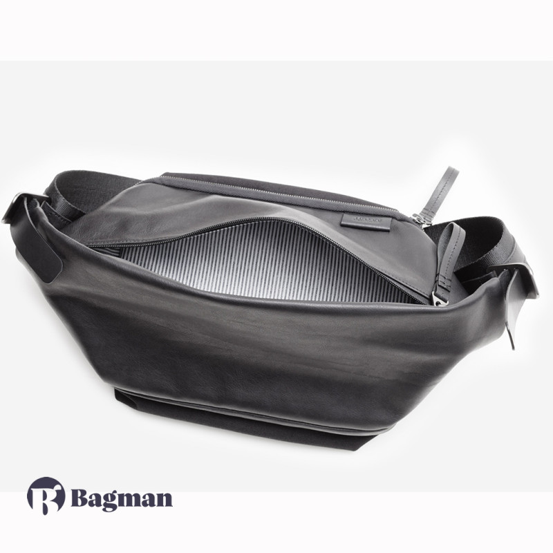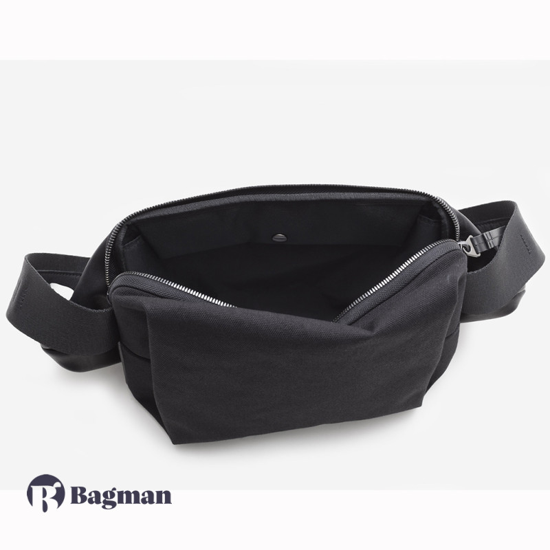Поясная сумка имеет плоскую форму, которая гармонично смотрится на теле. При активных движениях аксессуар не вызывает неудобств, а содержимое находится всегда под контролем.