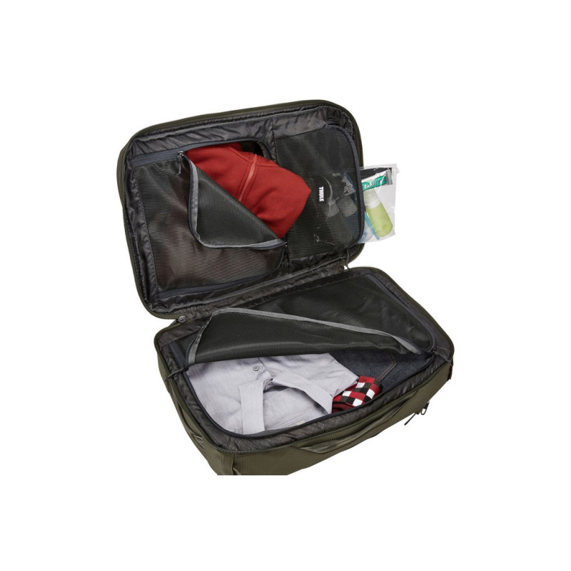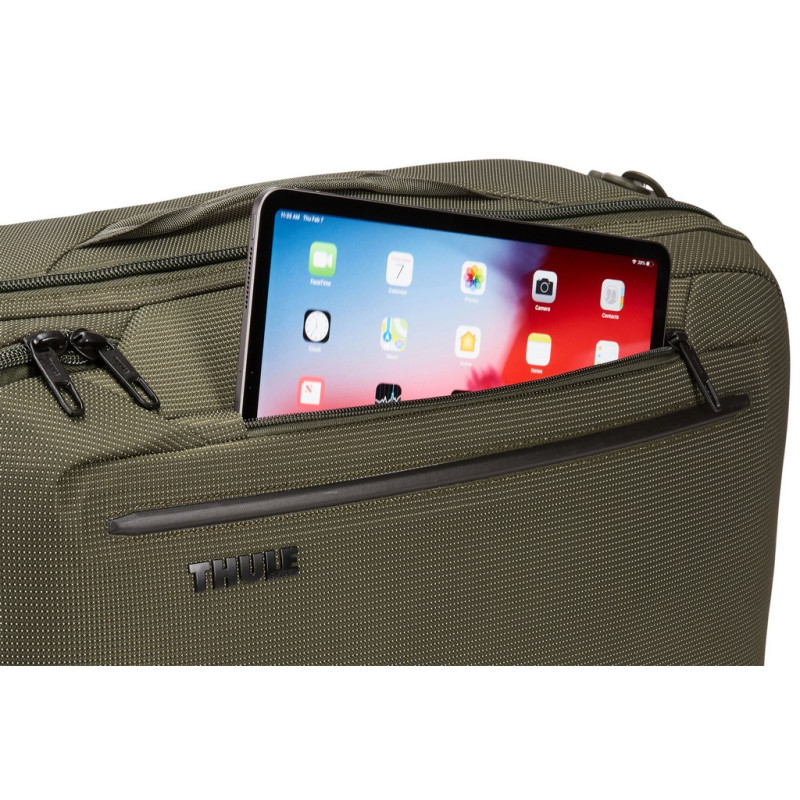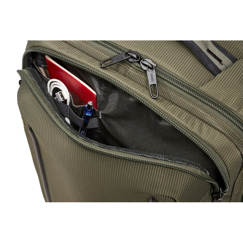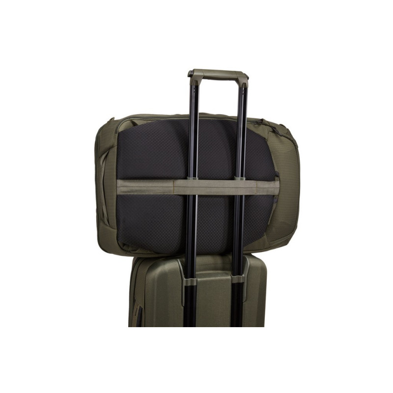 Thule Crossover 2 Convertible Carry On 41L — это тревел-аксессуар 2 в 1. Его можно носить на двух плечах, как рюкзак, а можно использовать его в качестве сумки. Рюкзачные шлейки находятся в заднем кармане. Регулируемый ремень с наплечником крепится к изделию карабинами. Задняя панель служит для установки сумки на выдвижную ручку чемодана.