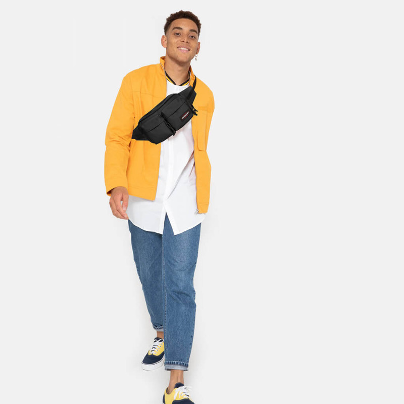 Eastpak Bumbag Double Black — это поясная сумка черного цвета, которая вмещает много вещей. Она изготовлена из износостойких материалов с водоотталкивающей обработкой. Размещать аксессуар можно разными способами. Подобрать удобное расположение под свой тип телосложения поможет регулируемый ремень с соединительной защелкой.