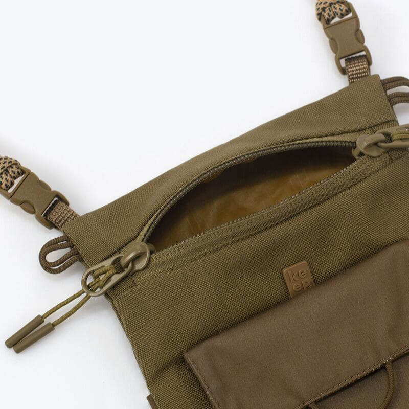 Keep Fjørd Mini 1L coyote — это мини-сумка на плечо, которая подойдет как для ежедневного использования, так и для путешествий. В ней есть место для самых необходимых мелочей, таких как телефон, документы, ключи. Есть внешнее крепление для очков, которое находится сбоку.