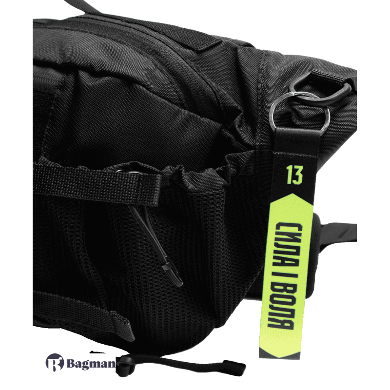 - З'ємна брендована стропа "СИЛА І ВОЛЯ" може бути від'єднана від сумки і використовуватися як брелок для ключів
