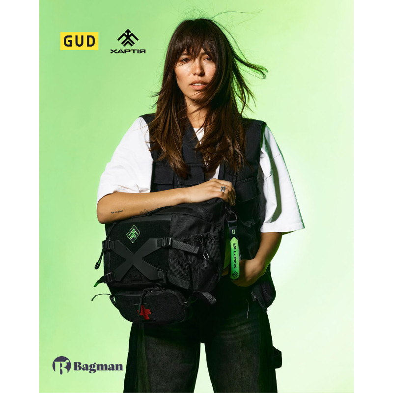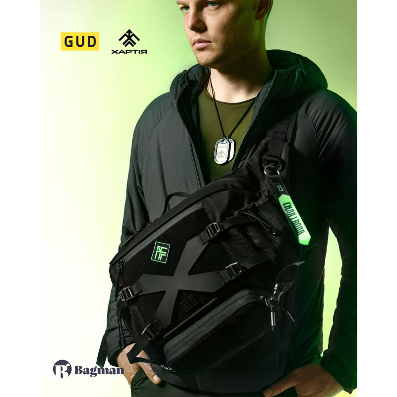 Колаборація бренду GUD і бригади Хартія, присвячена другій річниці її заснування, яка символізує єдність цивільних і військових, де турбота один про одного стає нормою. Ця сумка несе ідею, що готовність рятує життя, тому має в комплекті підсумок для цивільної аптечки. Частина прибутку з продажу цієї сумки буде спрямована виробником на забезпечення бригади «Хартія» та зміцнення нашого спільного фронту.
