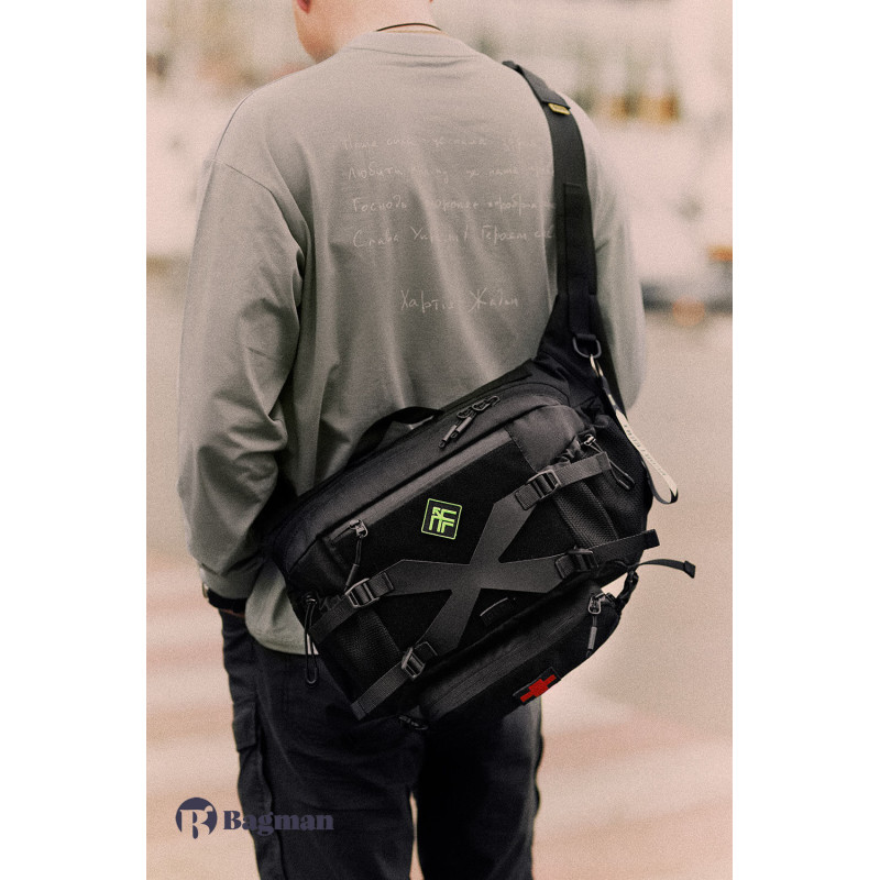 - Основна регульована стропа має міцний фастекс-застібку для швидкого скидання сумки за потреби