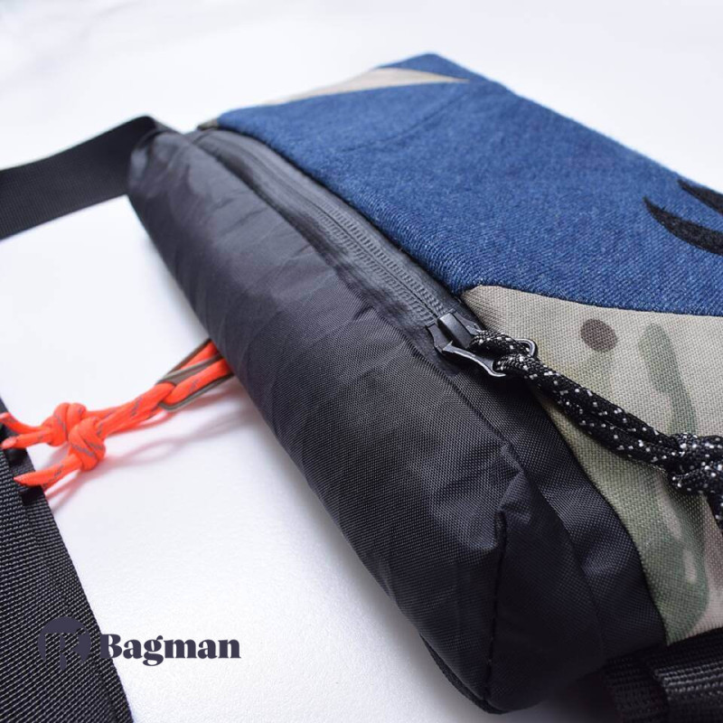 - Основний матеріал: Upcycling denim, Cordura, X-Pac;