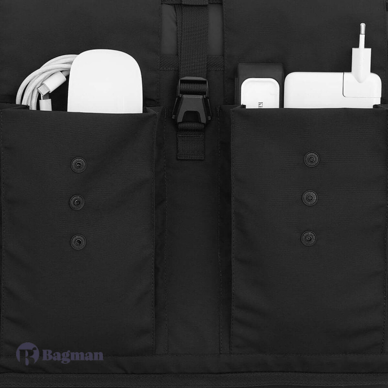 - основне відділення з захищеним відсіком під 15″ лептоп / планшет та чотирма додатковими внутрішніми кишенями