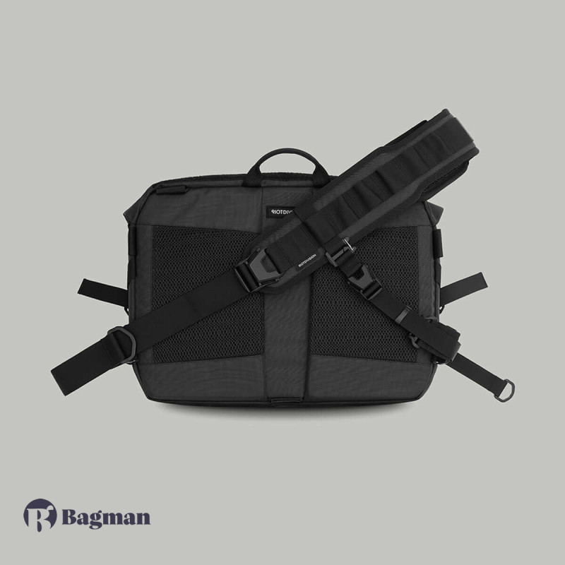 RIOTDIVISION Messenger Bag F18 - це сумка через плече на 18 літрів з щільного нейлону з водовідштовхуючим напиленням, має захищений відсік під 14" лептоп / планшет.