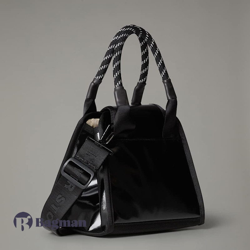 - Has multiple carrying options with climbing-rope-inspired handles and a removable shoulder strap made with branding-embossed, shiny webbing
