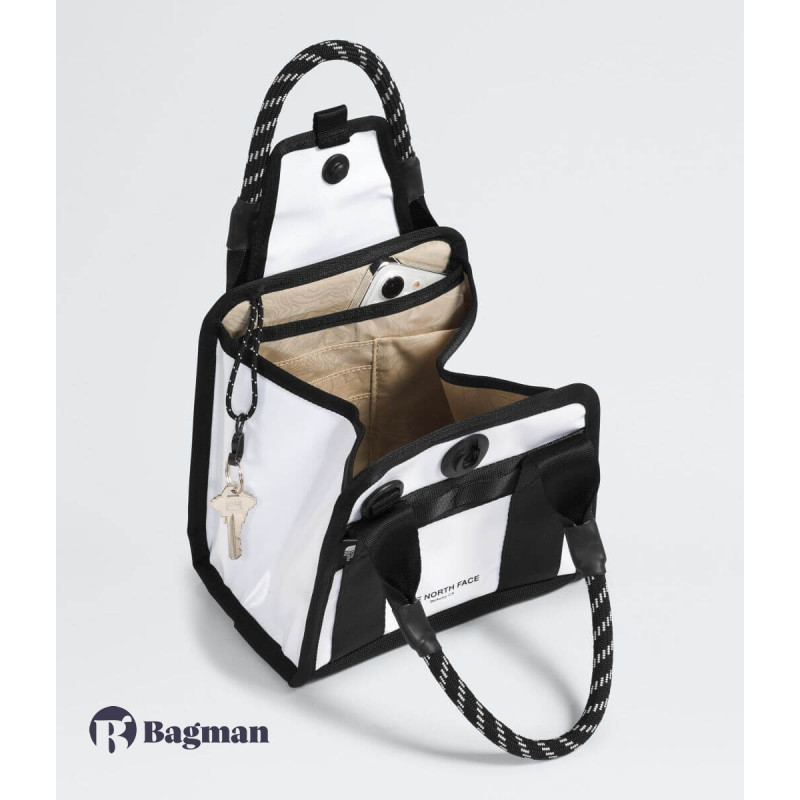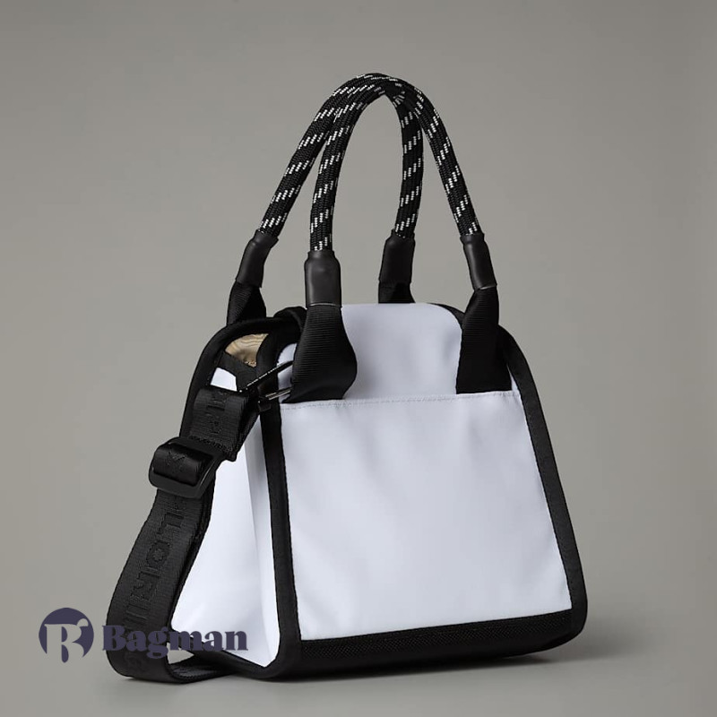 - Has multiple carrying options with climbing-rope-inspired handles and a removable shoulder strap made with branding-embossed, shiny webbing