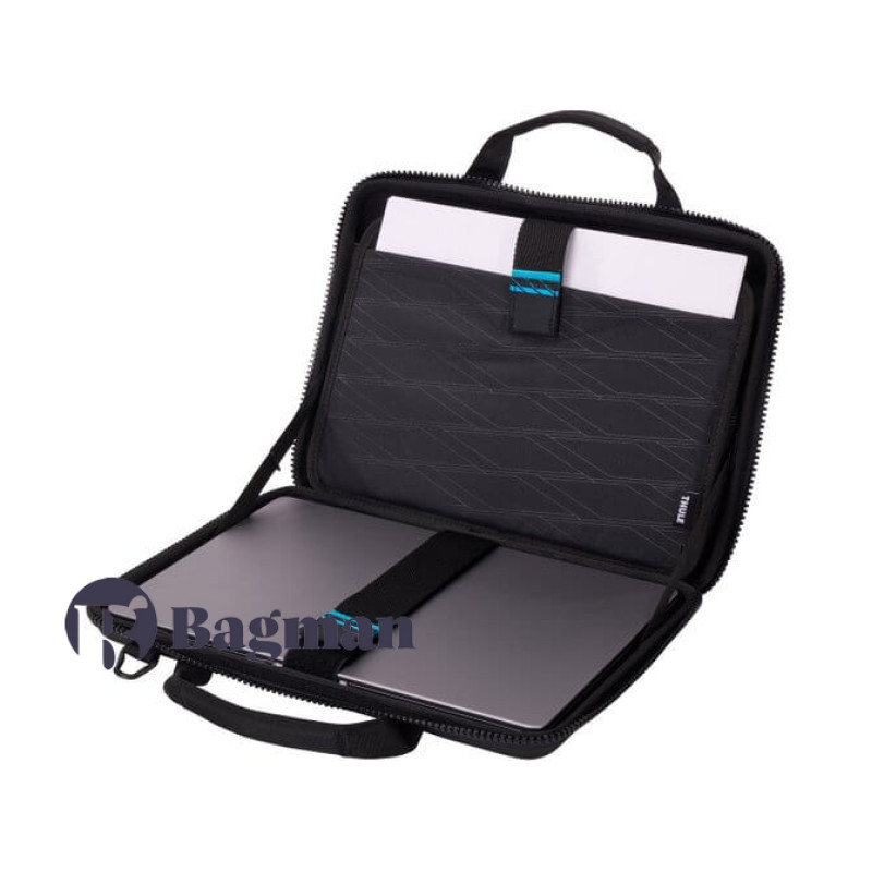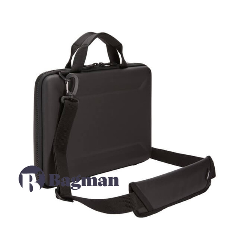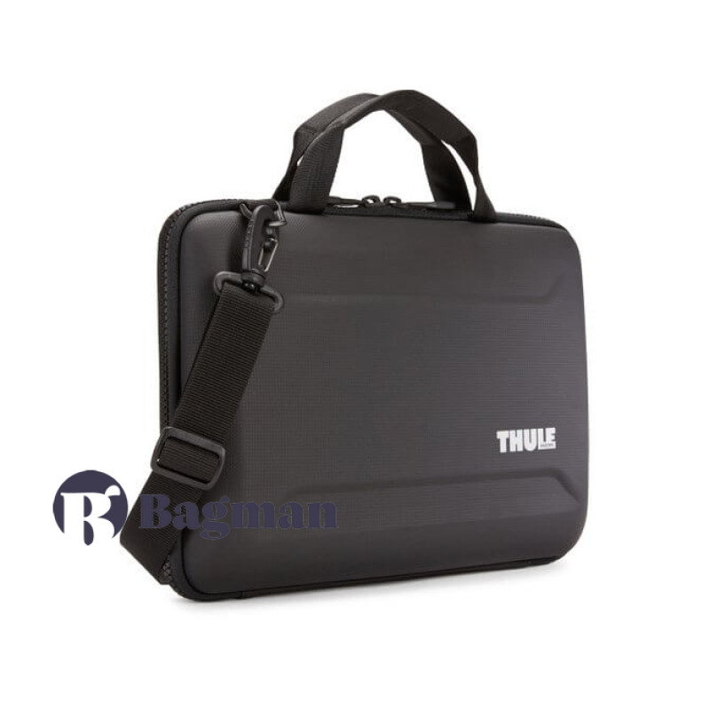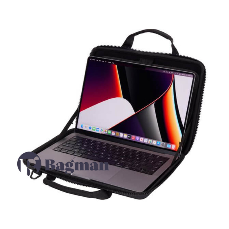 Gauntlet MacBook Pro Attache 14" Black от европейского бренда Thule — это защитная сумка с ручками и длинным ремнем для макбука. Аксессуар подходит для 14-дюймового MacBook Pro или MacBook Air 2018. Также данная модель совместима с другими ноутбуками, размеры которых не превышают 31.3 см. x 22.1см. x 5 см.
