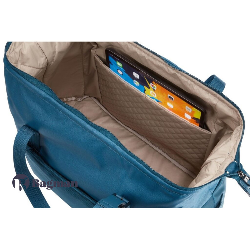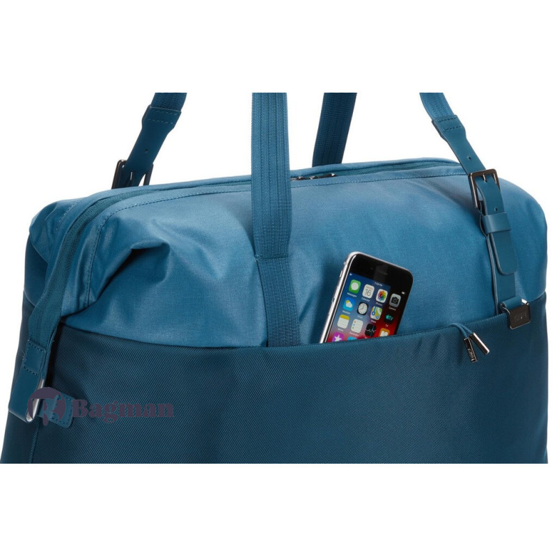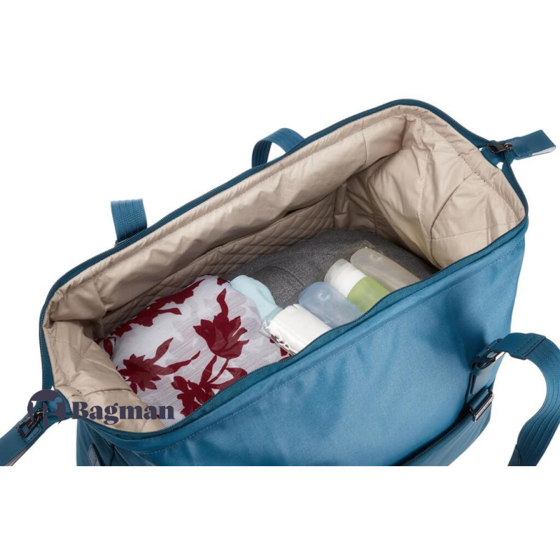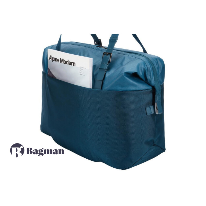 С сумкой Thule Spira Weekender 37L Legion Blue можно отправиться в короткое путешествие или на уикэнд. Она имеет небольшой размер и лаконичный дизайн. За две ручки сумку можно нести на плече или в руке. При помощи задней панели аксессуар фиксируется на чемоданной выдвижной ручке.