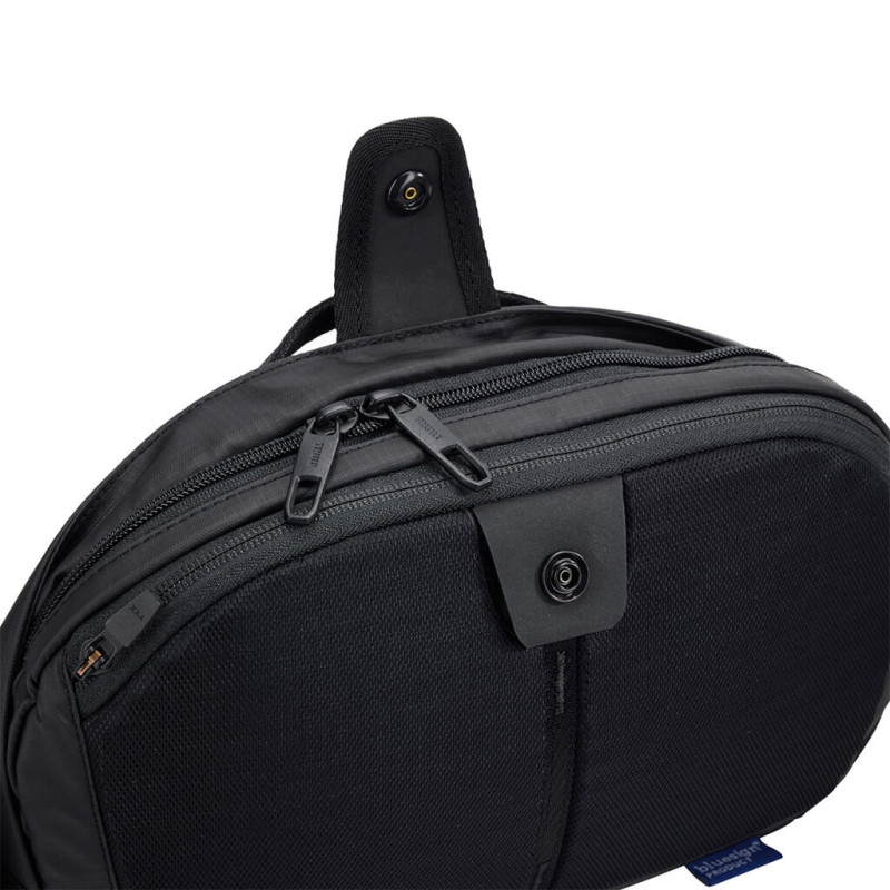 Основное отделение сумки закрывается скрытой молнией и кнопкой. Это защитит от постороннего проникновения. Внутри находится сетчатый карман с органайзером и карабин для ключей. В кармане RFIDBLOCK документы будут надежно защищены. В сумку помещается 7-дюймовый планшет.