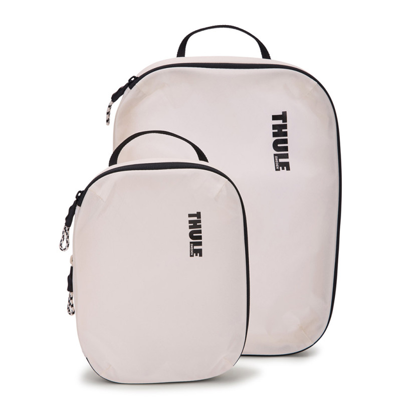 Thule Compression Packing Cube Set — це набір пакувальних боксів для одягу, який складається з двох аксесуарів. Сумка середнього розміру підійде для упаковки штанів і джемперів, а в сумку малого розміру зручно складати нижню білизну і футболки. Обидві сумки поміщаються в ручну поклажу і ще залишається місце для додаткових речей.