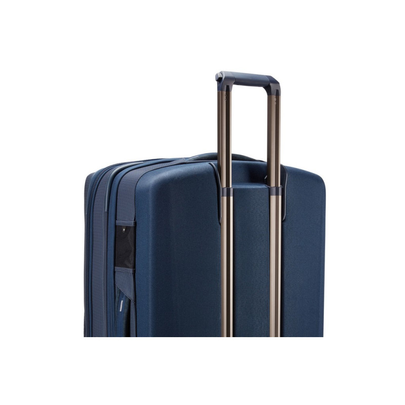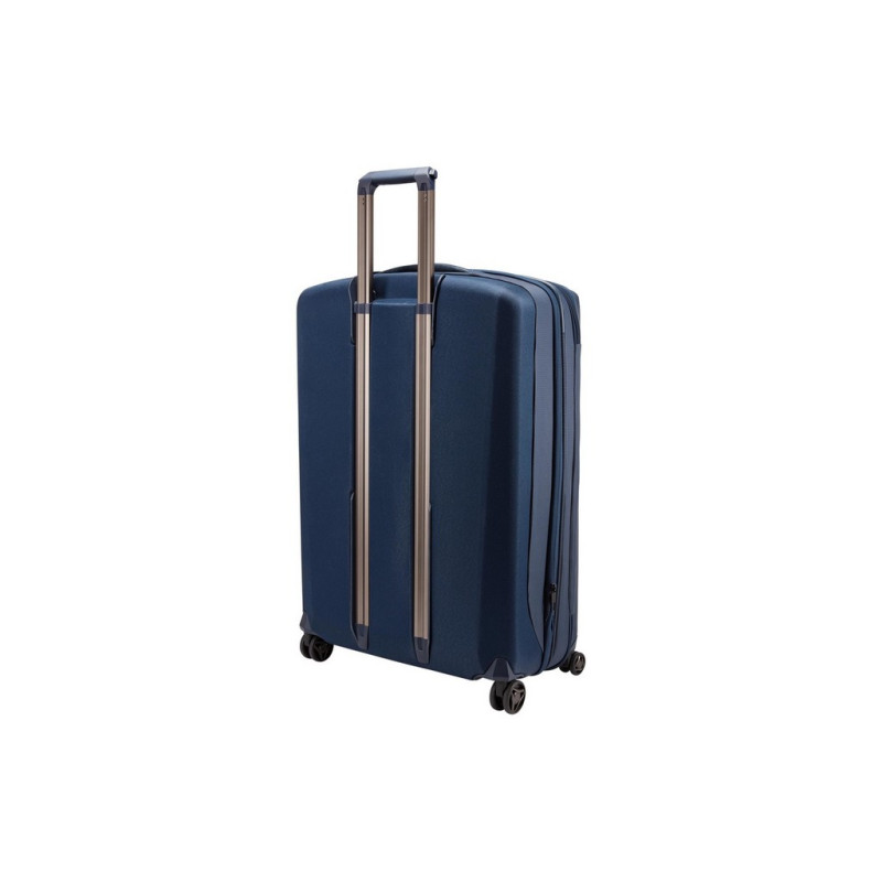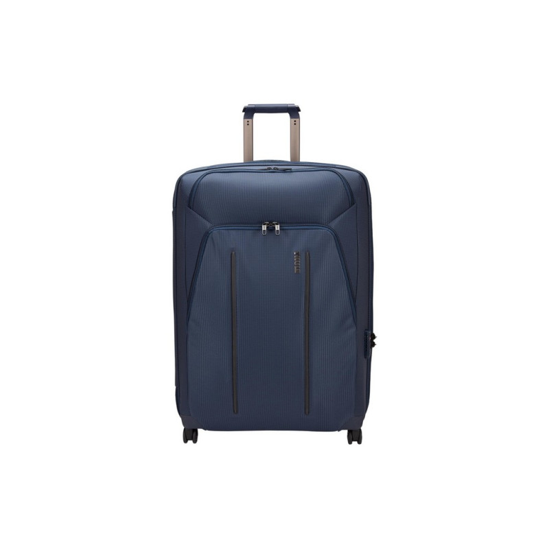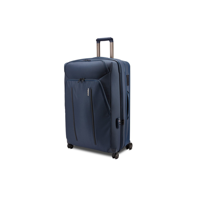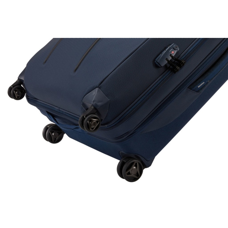 Велика валіза на чотирьох колесах Thule Crossover 2 Spinner 110L Dress Blue без зусиль доставить речі в пункт призначення. Для безпеки речей вона оснащена кодовим замком TSA, міцним каркасом, ударостійкою задньою поверхнею і посиленими кутами. Матеріал виготовлення стійкий до промокання.
