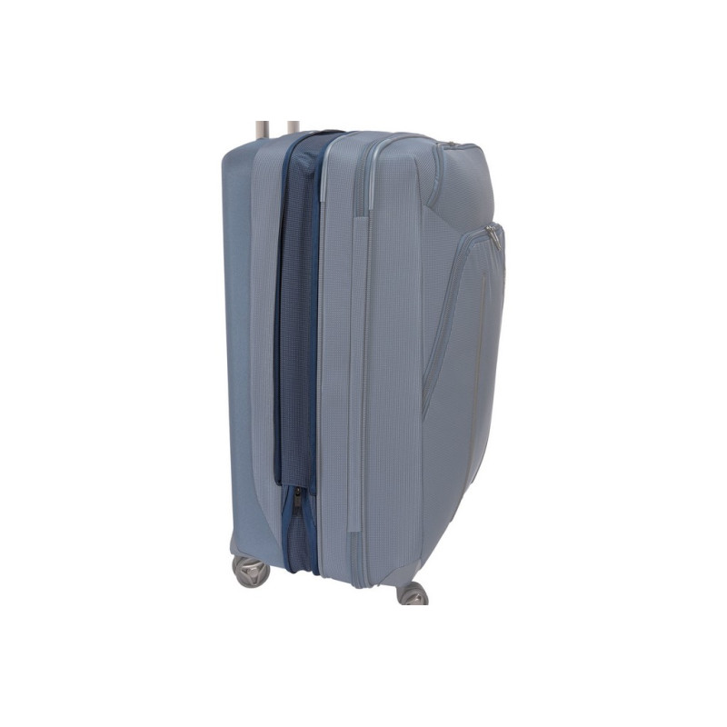 Чотири колеса забезпечують обертання валізи навколо своєї осі. Є короткі ручки для переноски багажу в руці. Об'єм валізи можна збільшити, розстебнувши кругову блискавку.