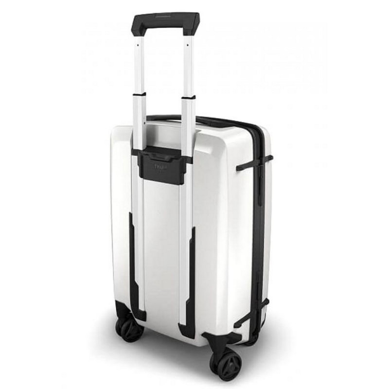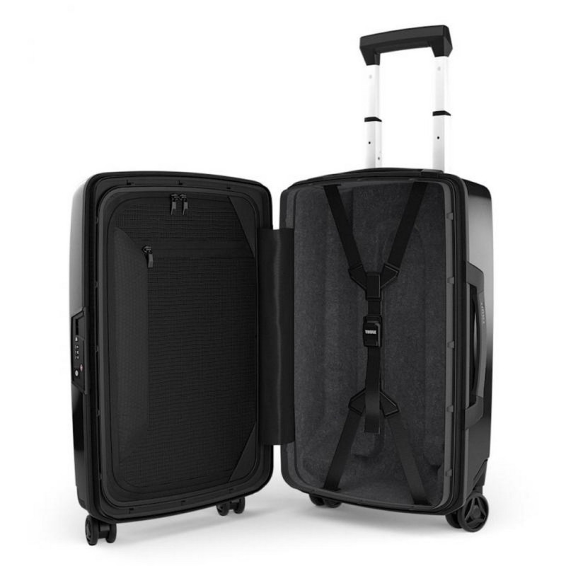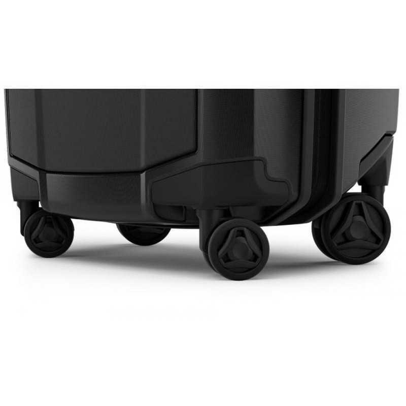 Валіза Thule Revolve Carry On Spinner — це дорожній аксесуар преміум-класу. Вона проста в управлінні і забезпечує максимальну безпеку речам. Чотири колеса обертаються навколо своєї осі, роблячи пересування маневреним. Передні колеса зменшені, щоб усередині валізи залишилося більше місця.