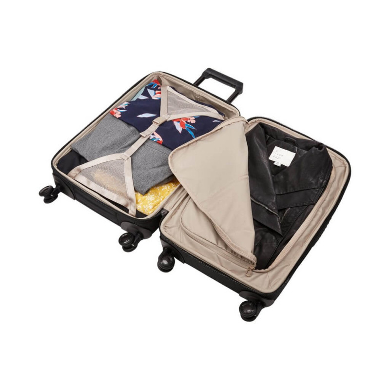 • Завдяки унікальній конструкції чемодан повністю розкривається, що забезпечує доступ до кожного відділення і дозволяє зручно та організовано пакувати речі