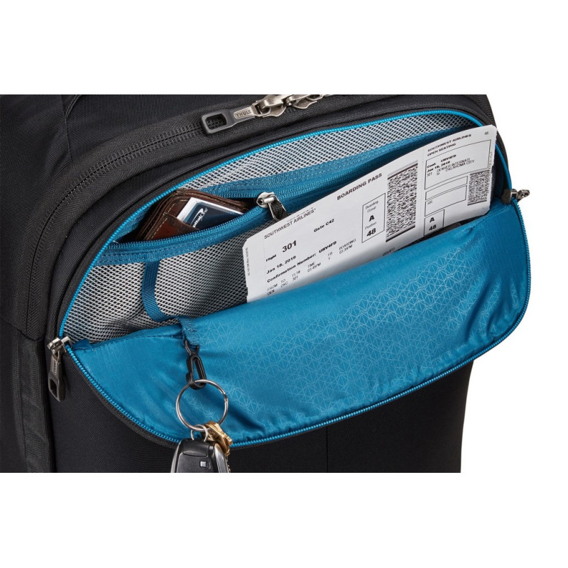 Валіза має містке відділення з компресійною панеллю. З її допомогою можна відокремити чисті речі від брудних. Велика сітчаста внутрішня кишеня створена для окремого зберігання невеликих предметів. У передній кишені валізи знаходиться невелика кишеня із сітки і кріплення для ключів. У бічну сітчасту кишеню вставляється ID-картка для спрощення ідентифікації валізи.
