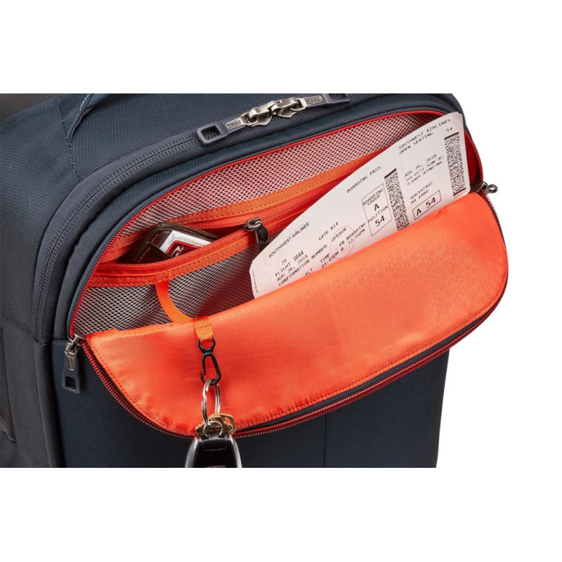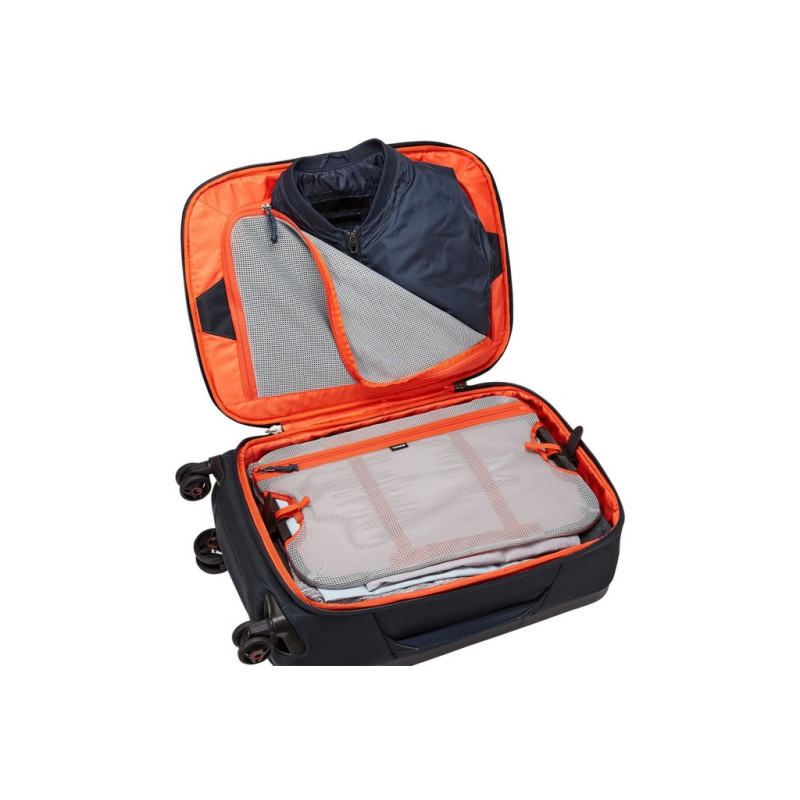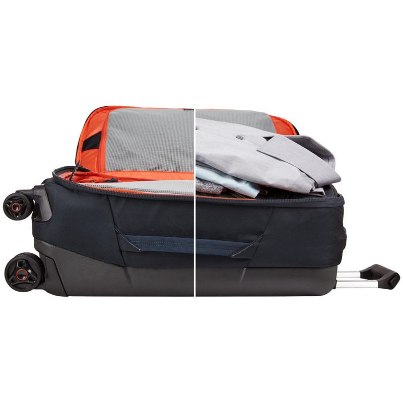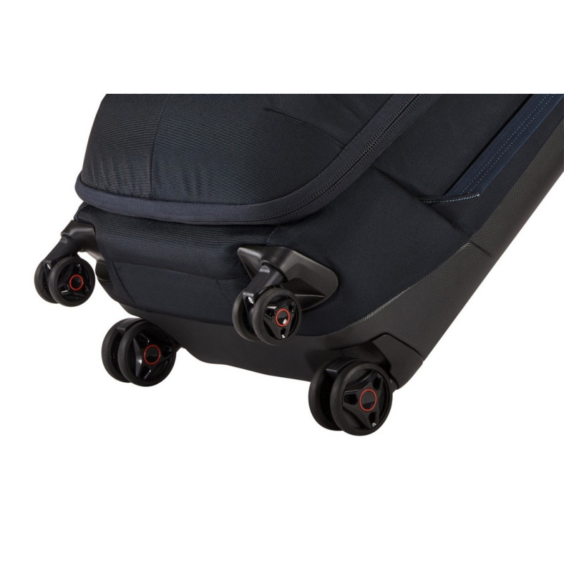 Чотириколісну валізу Thule Subterra Carry-On Spinner Mineral можна брати на борт літака, оскільки її розміри відповідають стандартам ручної поклажі в більшості авіакомпаній. Валіза проста в управлінні, її можна обертати навколо своєї осі. Завдяки зменшеним переднім колесам всередині залишається більше місця для речей.