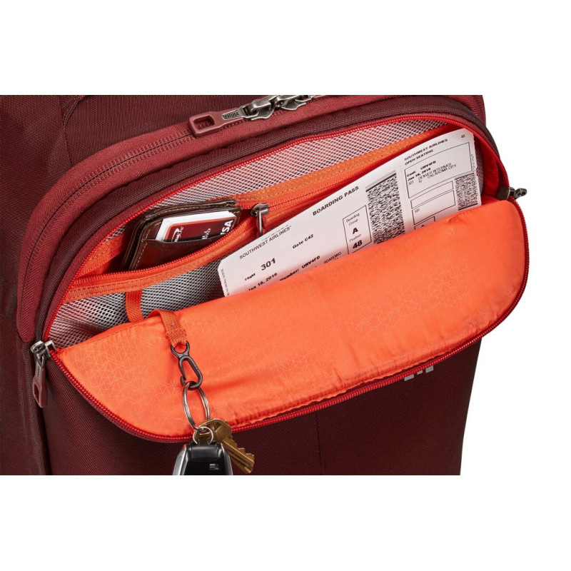 Передня кишеня містить внутрішню кишеню і кріплення для ключів. У бічній кишені із сітки розміщується адресна картка для полегшення ідентифікації багажу.