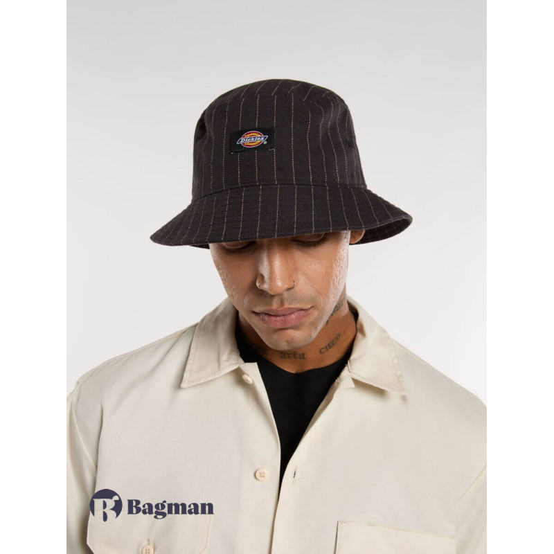 Примітка від команди Dickies: The Service Bucket hat is a warm-weather bucket hat constructed from hardwearing cotton denim. It has a classic all-around fit finished with an all-over hickory stripe and an iconic Dickies label on the front. A fresh summer hat with a retro feel.