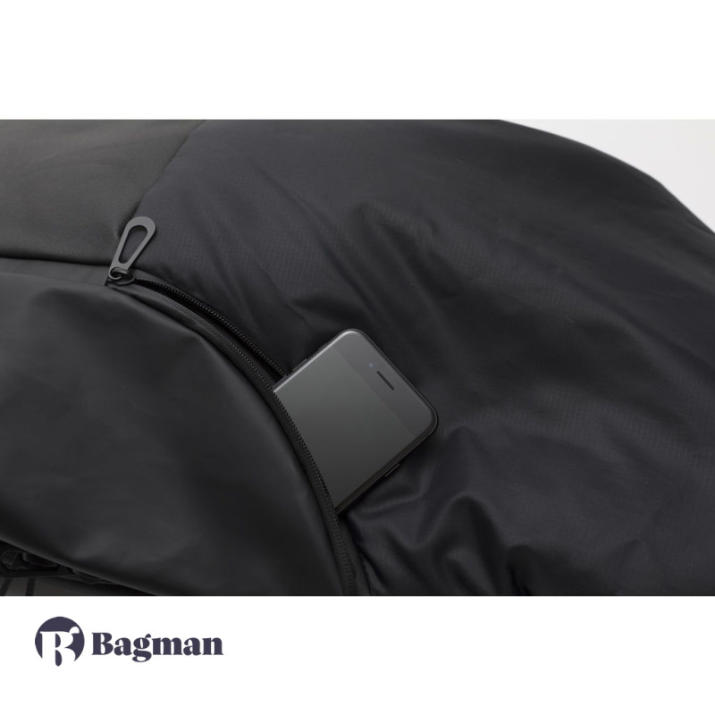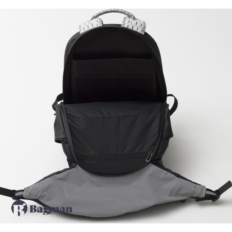 Для особистих речей є велике відділення з внутрішніми кишенями. Укріплений відсік створений для ноутбука. Дві кишені з сітчастої тканини підходять для дрібних предметів. Є відділення всередині із застібкою-блискавкою.
