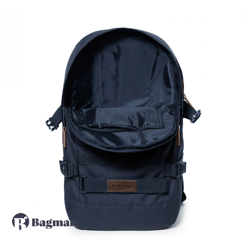 Для основних речей передбачено два відділення на двосторонніх блискавках. Є внутрішній тримач для ключів. Потаємна кишеня знаходиться на нижній частині спинки рюкзака.