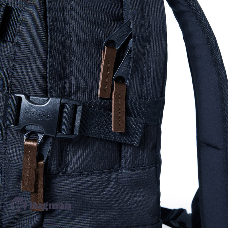 Пошитий рюкзак з темно-синього поліестеру з водовідштовхуючими властивостями. У наявності невеликі шкіряні деталі коричневого відтінку. Спинка рюкзака і його ремені ущільнені. Є нагрудний ремінь, який регулюється по довжині і по висоті розташування. Застібається він за допомогою пластикового фастексу. Ремінь допомагає стабілізувати посадку рюкзака.
