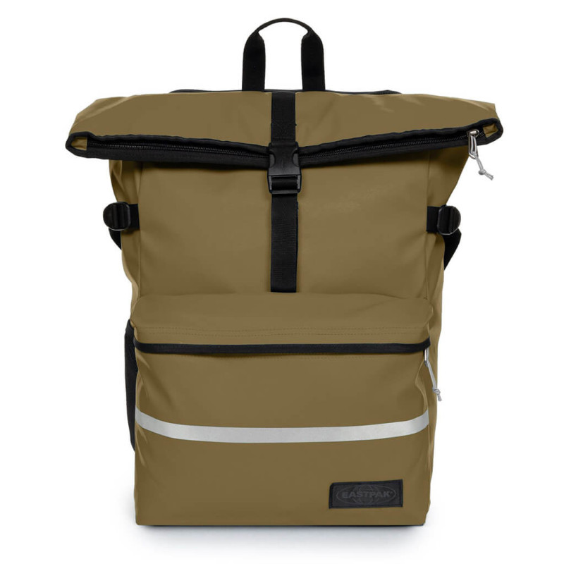 Eastpak Maclo Bike 31L Tarp Army — це нова модель рюкзака, який можна не тільки носити на плечах, але і фіксувати на багажнику велосипеда. Задня панель з кріпленнями відстібається і ховається в нижній відсік. Спереду є світловідбиваюча смуга для безпеки на дорозі при поганій освітленості.