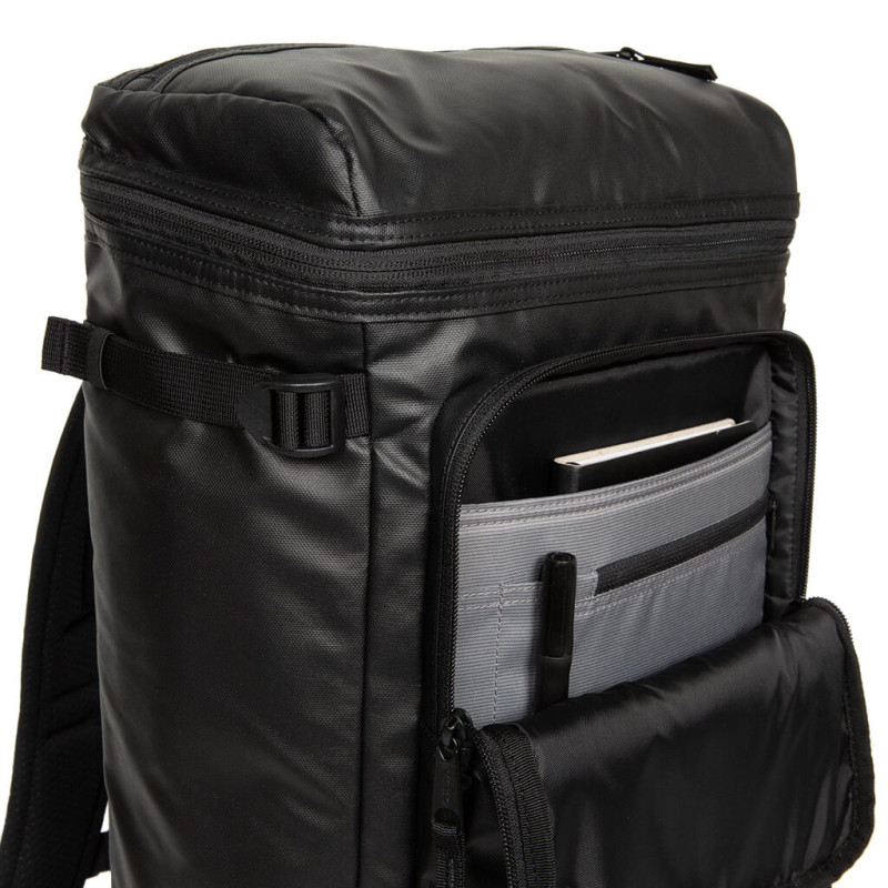 TECUM TOP від Eastpak - це міський рюкзак з вертикальним завантаженням. Він пошитий з поліестеру з покриттям імітуючим шкіру і захистом від промокання. Спинка і лямки рюкзака ущільнені і мають вентильоване покриття. Для розподілу ваги і надійної посадки є нагрудний ремінь. Чотири бічні стягуючі паски роблять рюкзак компактним.