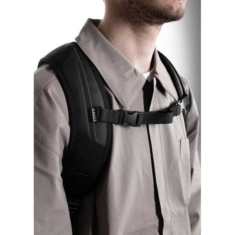 - Анатомічні м’які плечові лямки та регульований нагрудний ремінь забезпечують комфорт, рівномірний розподіл ваги й фіксацію рюкзака без зміщення під час руху