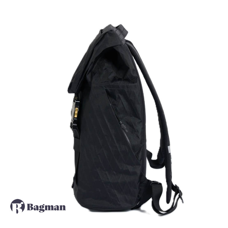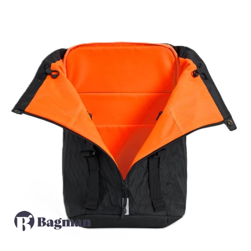 HURU 65°64° вирізняється своєю яскравою індивідуальністю, оригінальною формою та надзвичайною комфортністю для повсякденного використання. Вміщує базовий набір речей, а також ноутбук, зарядні пристрої, книгу, пляшку для води, гаманець та ключі. V-подібний замок розміщений по всій довжині для зручного відкриття. Основне відділення має місце для ноутбука, планшета, і ще дві зручні бокові кишені всередині