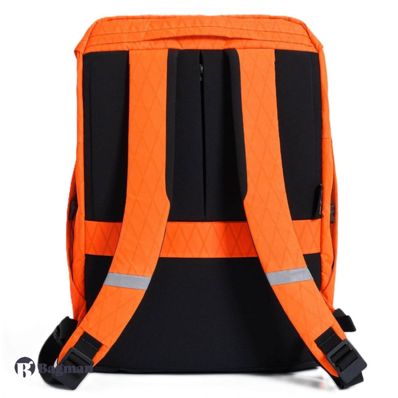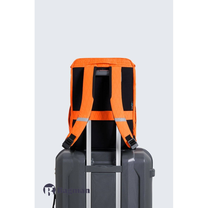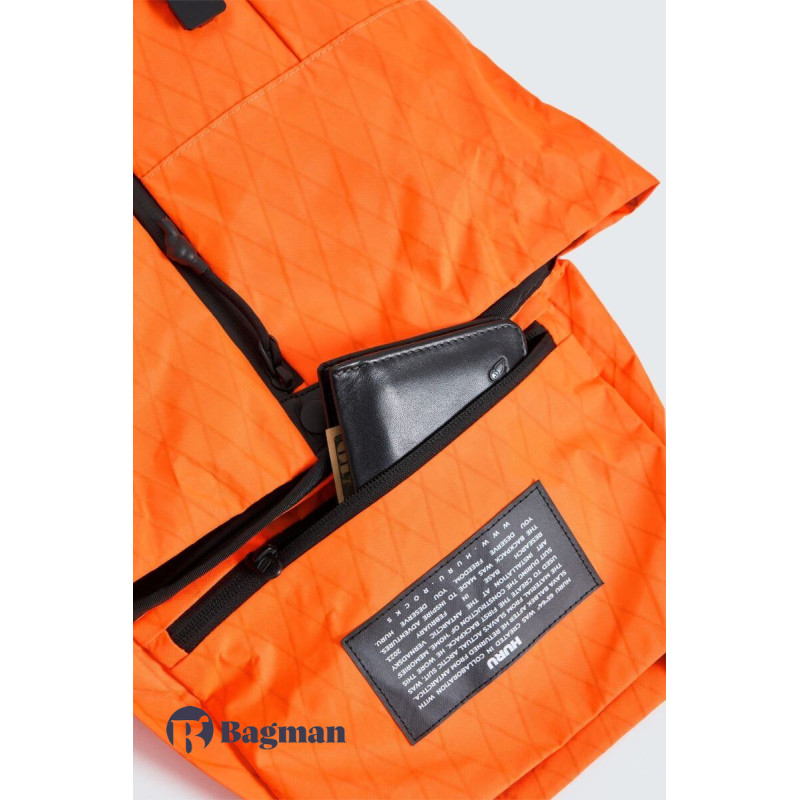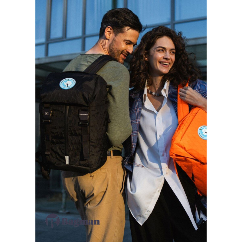 HURU 65°64° — міський рюкзак, що вирізняється своєю яскравою індивідуальністю, оригінальною формою та надзвичайною комфортністю для повсякденного використання. Вміщує базовий набір речей, а також ноутбук, зарядні пристрої, книгу, пляшку для води, гаманець та ключі. V-подібний замок розміщений по всій довжині для зручного відкриття. Основне відділення має місце для ноутбука, планшета, і ще дві зручні бокові кишені всередині