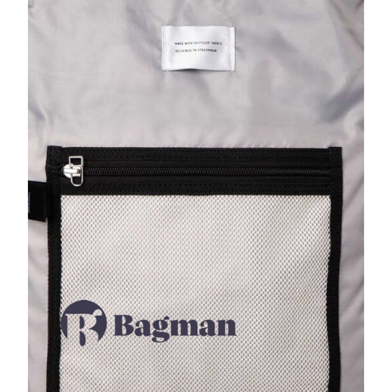 Рюкзак оснащений чотирма компресійними стропами з боків. Модель пошита з водостійкого переробленого поліестеру. Не рекомендується прати рюкзак в пральній машині.
