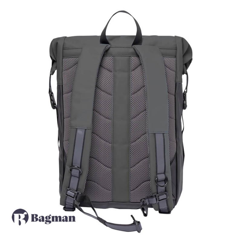 Рюкзак зроблено зі зносостійкого переробленого поліестеру з ТПУ покриттям, яке відштовхує вологу. Спинка покрита вентильованою сітчастою тканиною. Рюкзак оснащений нагрудним ременем і світловідбиваючими елементами.