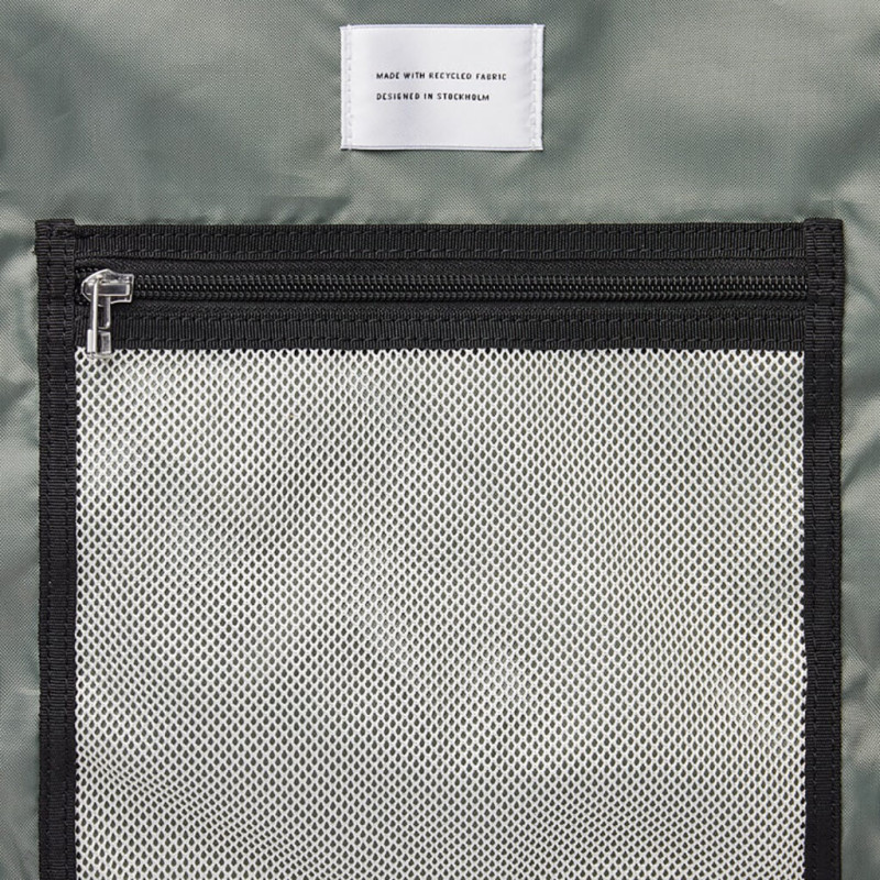 Виготовлений аксесуар з переробленого поліестеру. На його ремінцях є світловідбиваюче покриття, яке зробить вас добре помітними в темряві. Нижні ремені можна використовувати для кріплення легкої куртки або спортивного килимка. Бічні стяжки підтримують акуратну форму рюкзака.