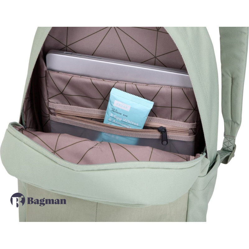 Рюкзак складається з одного відділення з внутрішнім безпечним відділом для ноутбука і кишенею з прозорою поверхнею і блискавкою для дрібниць. Спереду є дві додаткові кишені для невеликих предметів. В одній з них передбачено кілька відсіків і тримач для ключів. Пляшки з водою вкладаються в бічні кишені.