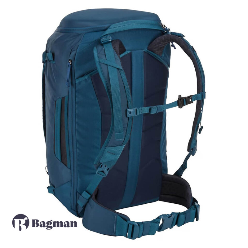 Thule Landmark 40L Women's Majolica Blue — це рюкзак для подорожей, сконструйований спеціально для жінок. Він дуже місткий, але в той же час підійде для ручної поклажі. Плечові лямки прибираються за спинку, і тоді рюкзак перетворюється на дорожню сумку, яку зручно переносити за ручку-переноску збоку або зверху.