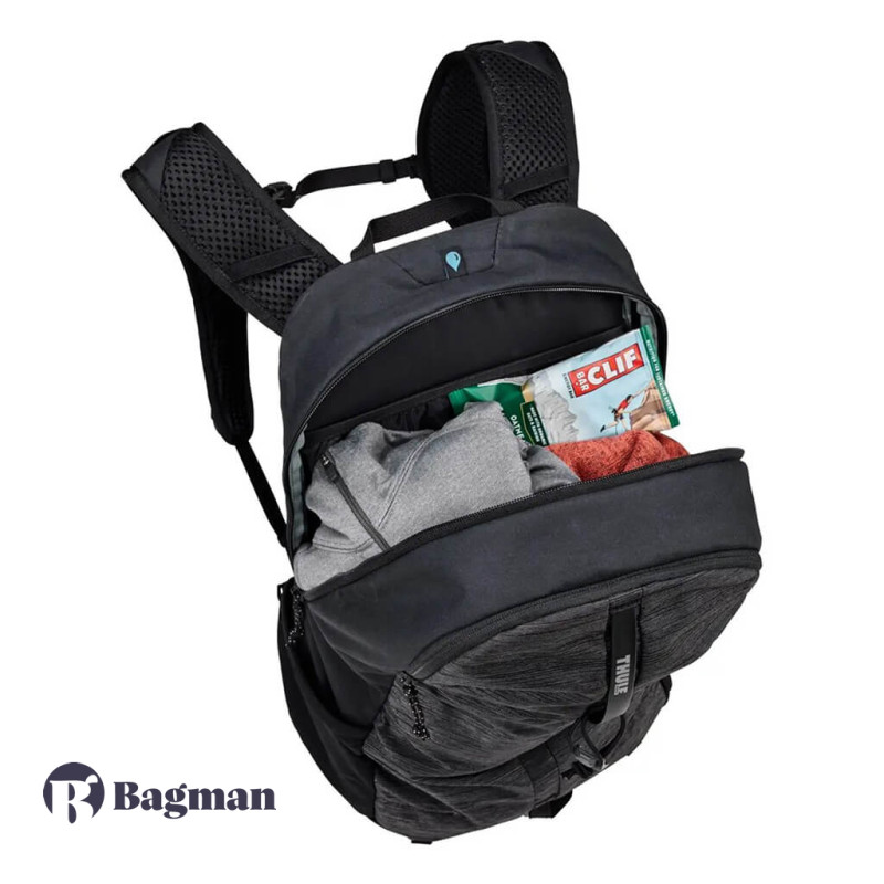 Всередині є відділення для 3-літрового гідратора (сам гідратор в комплект не входить). Трубка питної системи виводиться назовні через спеціальний отвір зверху і фіксується на лямці рюкзака. Спереду можна прикріпити складні трекінгові палиці, а знизу килимок або одяг.