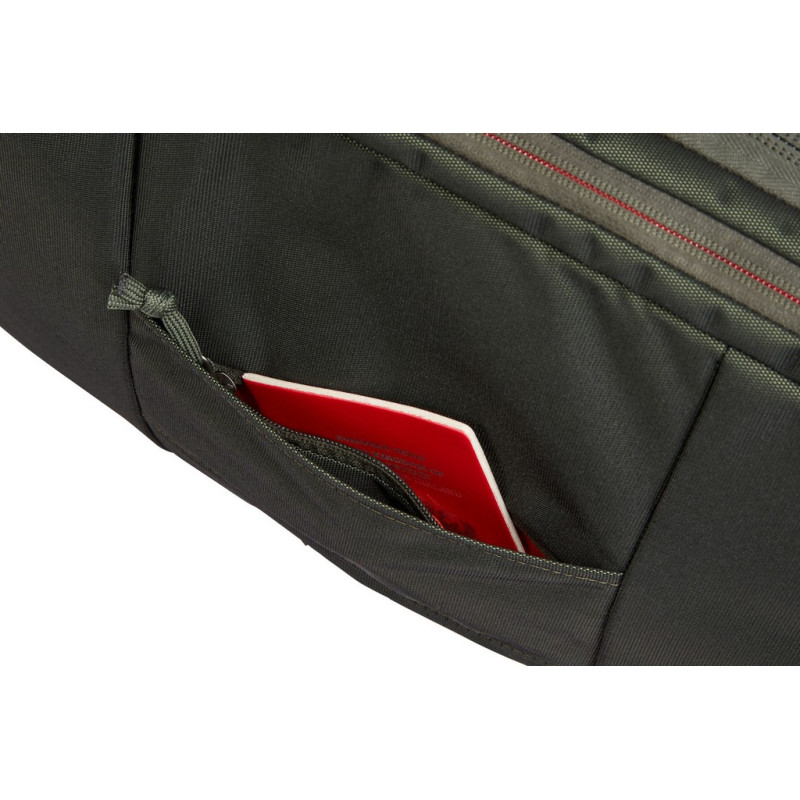 Для завантаження багажу на полицю передбачені зручні ручки вгорі і внизу. Через задню панель сумки простягається висувна ручка від валізи, щоб закріпити її вгорі. Документи з квитками кладуть у потаємну кишеню.