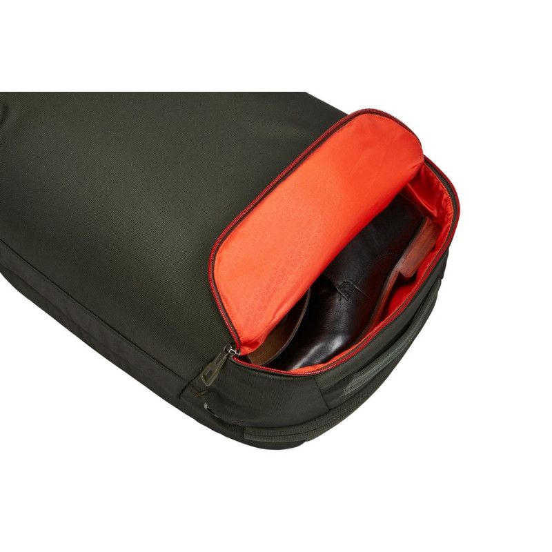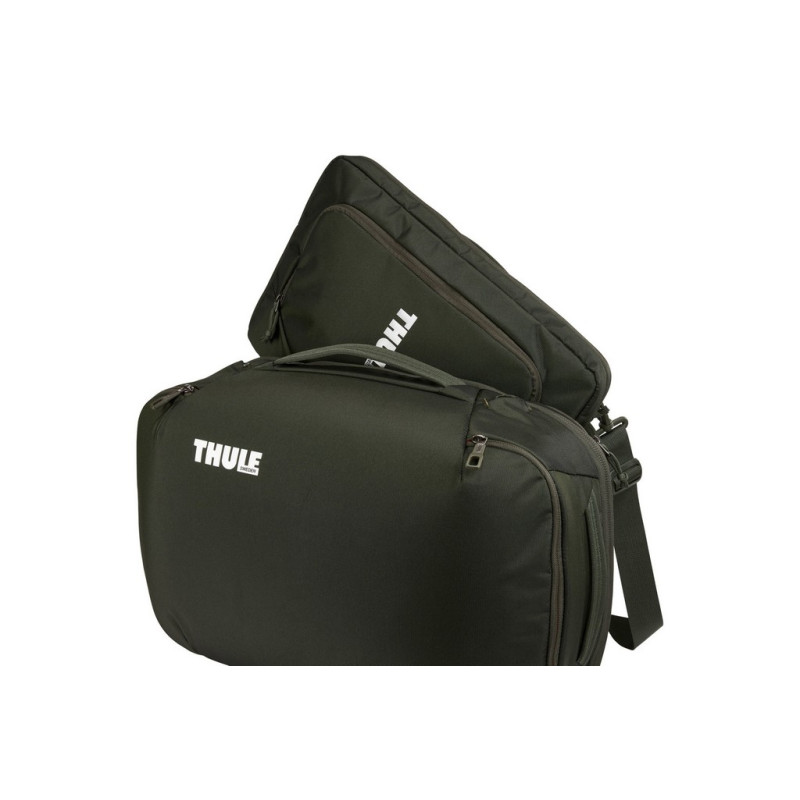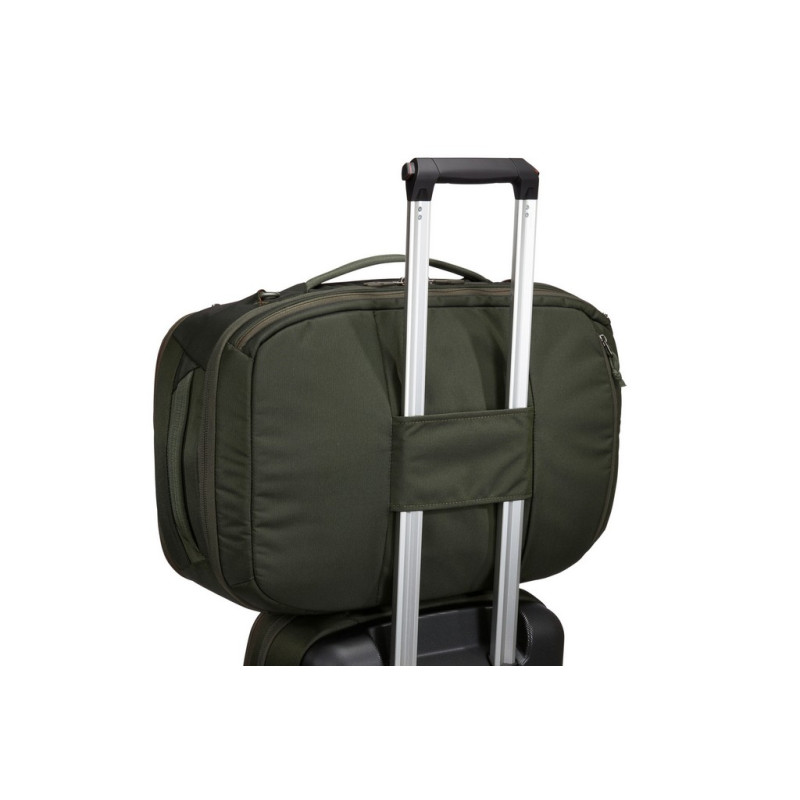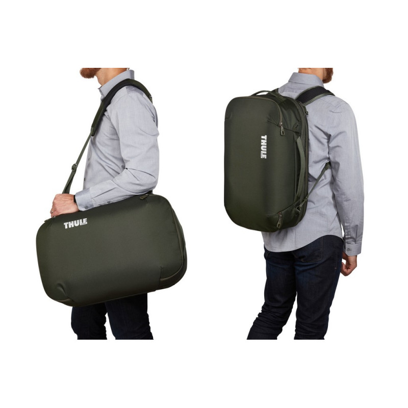 Наплічна сумка Subterra Carry-On здатна швидко перетворитися на рюкзак для більш зручного і легкого транспортування речей. Плечові ремені знаходяться в задній потаємній кишені. Ремінь з накладкою для плечового носіння кріпиться карабінами і прибирається при використанні даної моделі в якості рюкзака.