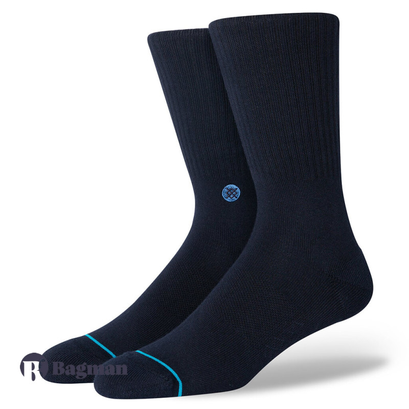 Stance ICON DARK NAVY L - це класична модель шкарпеток з однотонним дизайном. Вони мають середню товщину і виготовлені з натуральної бавовни. Пара шкарпеток має висоту до середини гомілки. П'яти і пальці ущільнені, оскільки найбільш схильні до зношування.